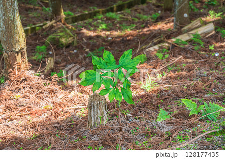 比叡山の山林風景 林床から生えだした若木 滋賀県大津市