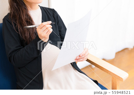 書類 書き込む妊婦