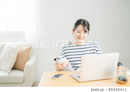 赤ちゃんを抱きながらパソコンを使う女性