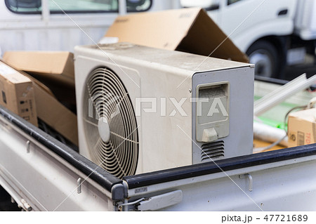 軽トラの荷台に載っている廃棄エアコン