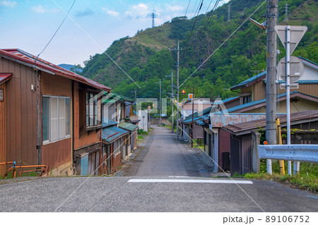 古河橋付近の住宅 松木川沿い 足尾 初夏の風景