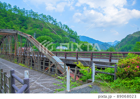 現在の古河橋 旧古河橋 松木川渓谷 初夏の風景