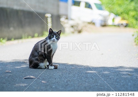 道路の日影で涼む野良猫【宮城県田代島】