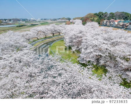 空撮 見沼田んぼの桜並木 日本一の桜回廊