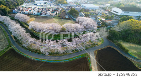 空撮「埼玉県」見沼田んぼの桜並木 日本一の桜回廊