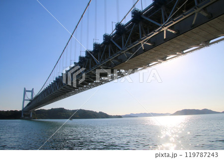 真下からみる夕方の瀬戸大橋 岡山県の田土浦公園