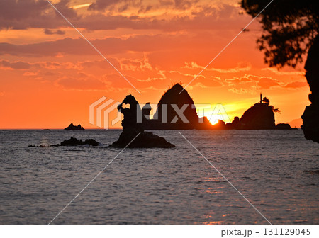 静岡県西伊豆町 大田子浜海岸の夕陽