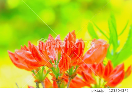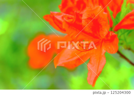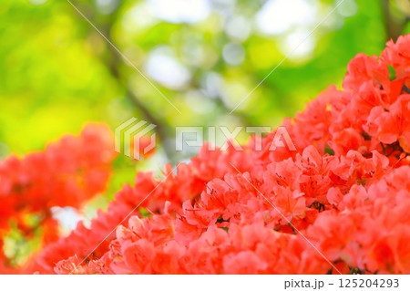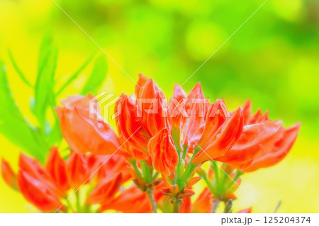 新緑の若葉と満開の鮮やかなレンゲツツジ