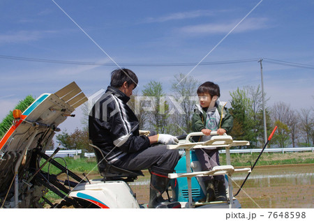 田植え機で田植えをするミドル男性 米農家