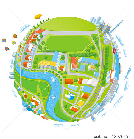 惑星|プラネット|小惑星|街|風景|俯瞰|鳥瞰|写真と合成可能|ベクター|イラスト|デザイン