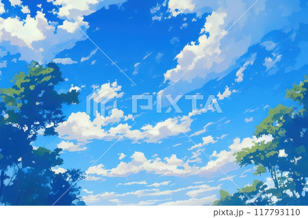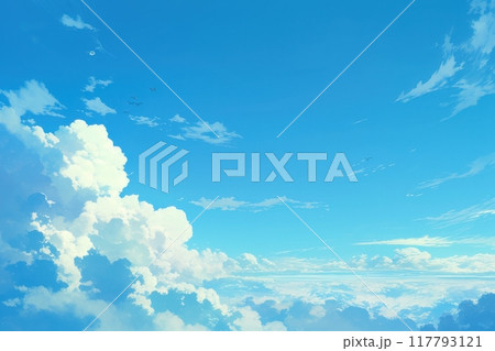 日本の青空と白い雲(雲・空・自然・風景・大空風・空気)