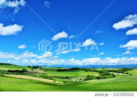 北海道 夏の青空と美瑛の風景