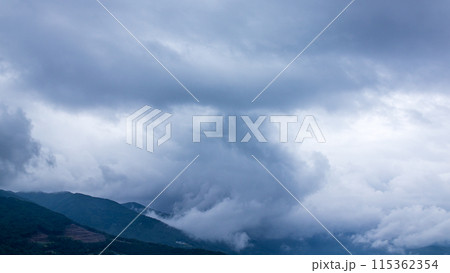雨の日の山頂に覆いかぶさる雲
