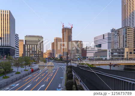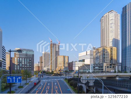 中之島 田蓑橋南詰付近から 夕陽に染まる堂島浜2丁目付近のビル群