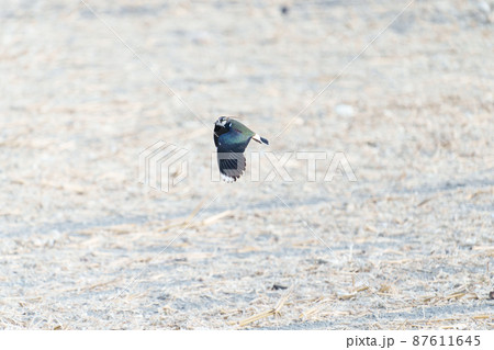 生き物 野鳥 タゲリ、光沢があり緑色や赤銅色、葡萄色に見える背中が美しい