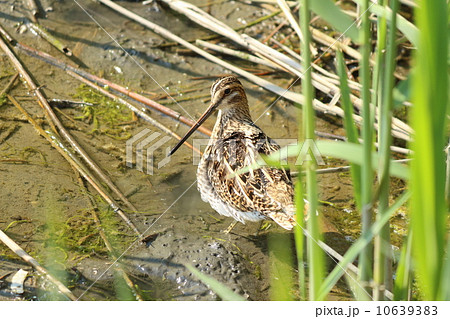 生き物 野鳥 タシギ、チドリ目シギ科の野鳥。体色は保護色、枯草の中では全く存在に気がつきません