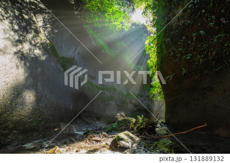 光さす由布川渓谷(由布市・別府市・縦構図)
