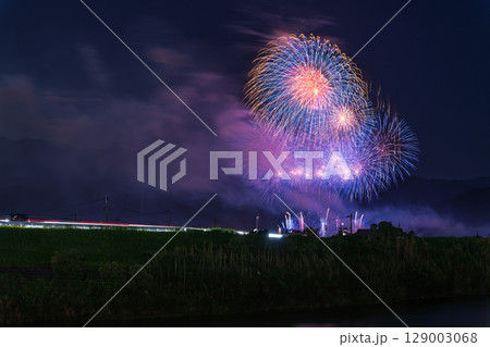 夏の夜空に映える夏の風物詩 打ち上げ花火風景 (鮎祭り花火大会 甲佐町)