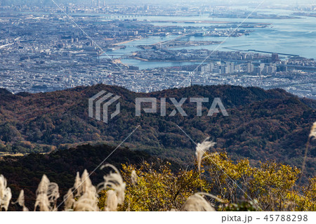兵庫県神戸市。六甲山上、六甲テラスガーデンからの眺望。甲子園浜付近。