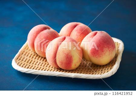 ざるに盛った桃 山梨県産白鵬
