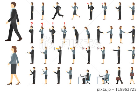 フラットイラスト:スーツ男女サイド(冬服)