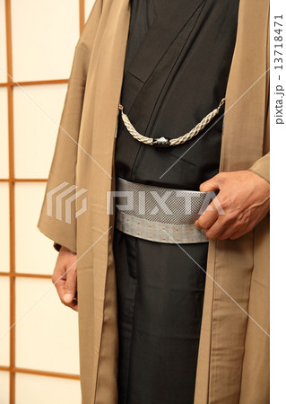 着付けイメージ 男性着物イメージ 角帯 男結び シニアの手