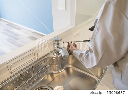 ヘルメットの作業員 住宅系汎用素材 ユニットバス取り替え前の内部点検