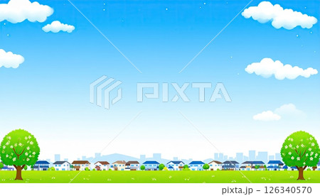 《AI画像》青空が広がる郊外の住宅街のイメージ