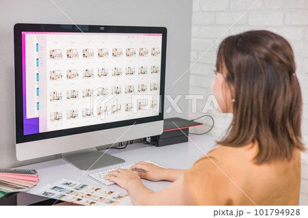写真編集・画像編集・写真加工・レタッチャー・グラフィックデザイナーの仕事をする女性