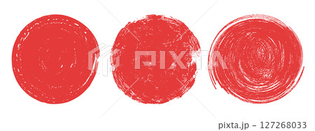 Japanese red sun brush stroke. Rough hand drawn round shape. Abstract grunge vector element.