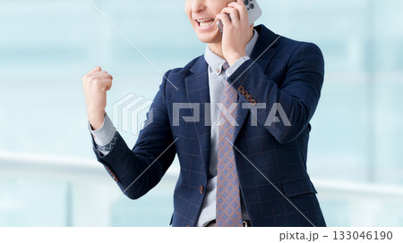 Young businessman using his mobile to talk on speaker phone or send voice messages