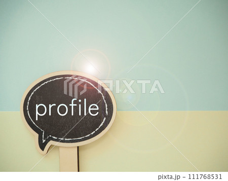 吹き出しにプロフィールprofileの単語、コピースペース