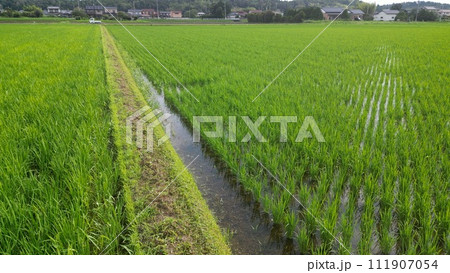 緑豊かな水田畔 - 手入れされた田んぼと草刈りの空撮2