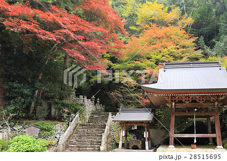 紅葉の名所「四国別格二十霊場第十番札所西山興隆寺」参道(仁王門から撮影)