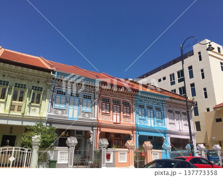 カラフルなプラナカン様式のショップハウスが並ぶシンガポールの街並み