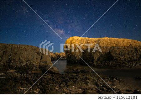 岸壁と星空