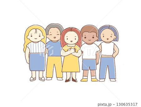 多様な人々が並んで、支えあう様子