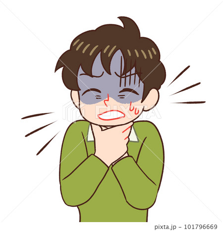 咽頭炎に苦しむ男の子 イラスト