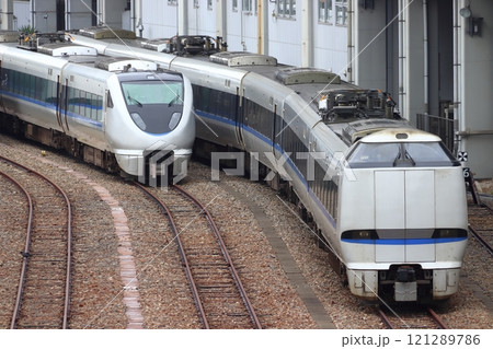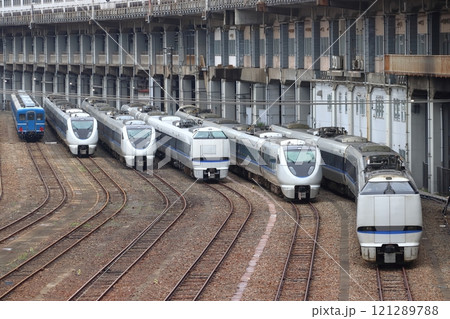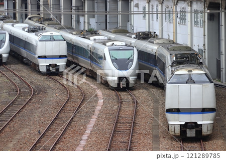 網干総合車両所宮原支所に留置中の車両:新塗装の特急しらさぎ用683系電車