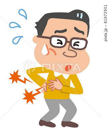 帯状疱疹後神経痛 背中と脇腹が痛い中年男性のイラスト