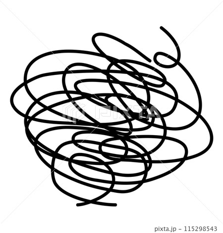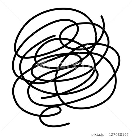 混乱、考え中のグチャグチャ、モヤモヤ線のイラスト素材
