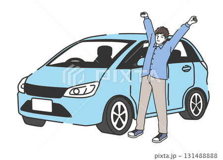 ドライブ休憩 背伸びする男性 イラスト