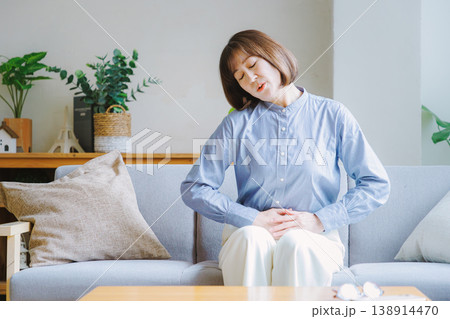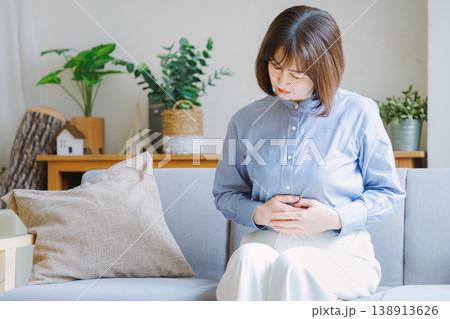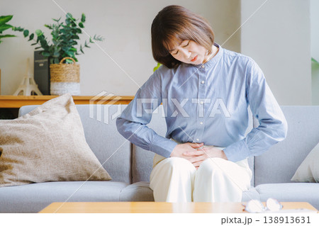 腹痛で苦しむミドル女性