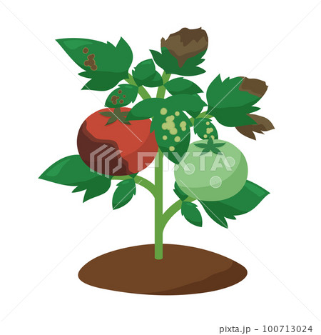 灰色かび病になったトマトの苗のイラスト