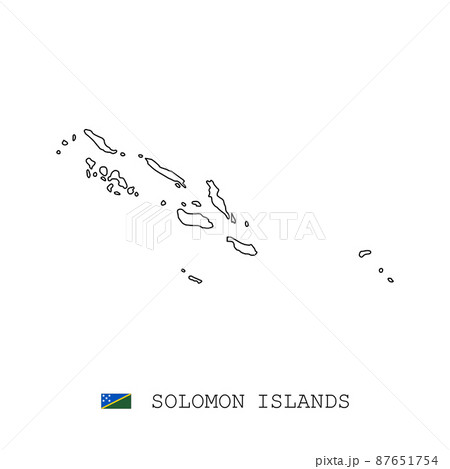 Solomon Islands map line, linear thin vector simple outline and flag. Black on white