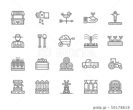 Set of Farming and Agriculture Line Icons. Farmer, Tractor, Millwheel and more.