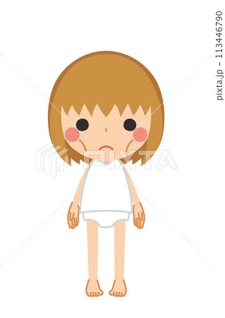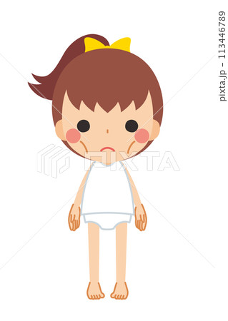 ガリガリの痩せた体型の可愛い小さな女の子のイラスト 全身 ベクター 白背景