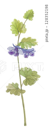 水彩で描いた乾燥したカキドオシ 垣通し