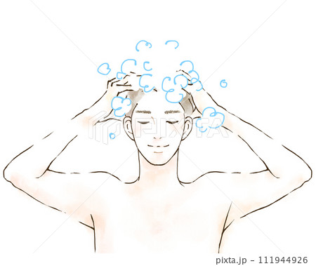 シャンプーする男性のイラスト 頭皮マッサージ 育毛