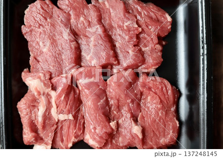 食品トレーの上の焼肉用のオーストラリア産牛バラカルビ